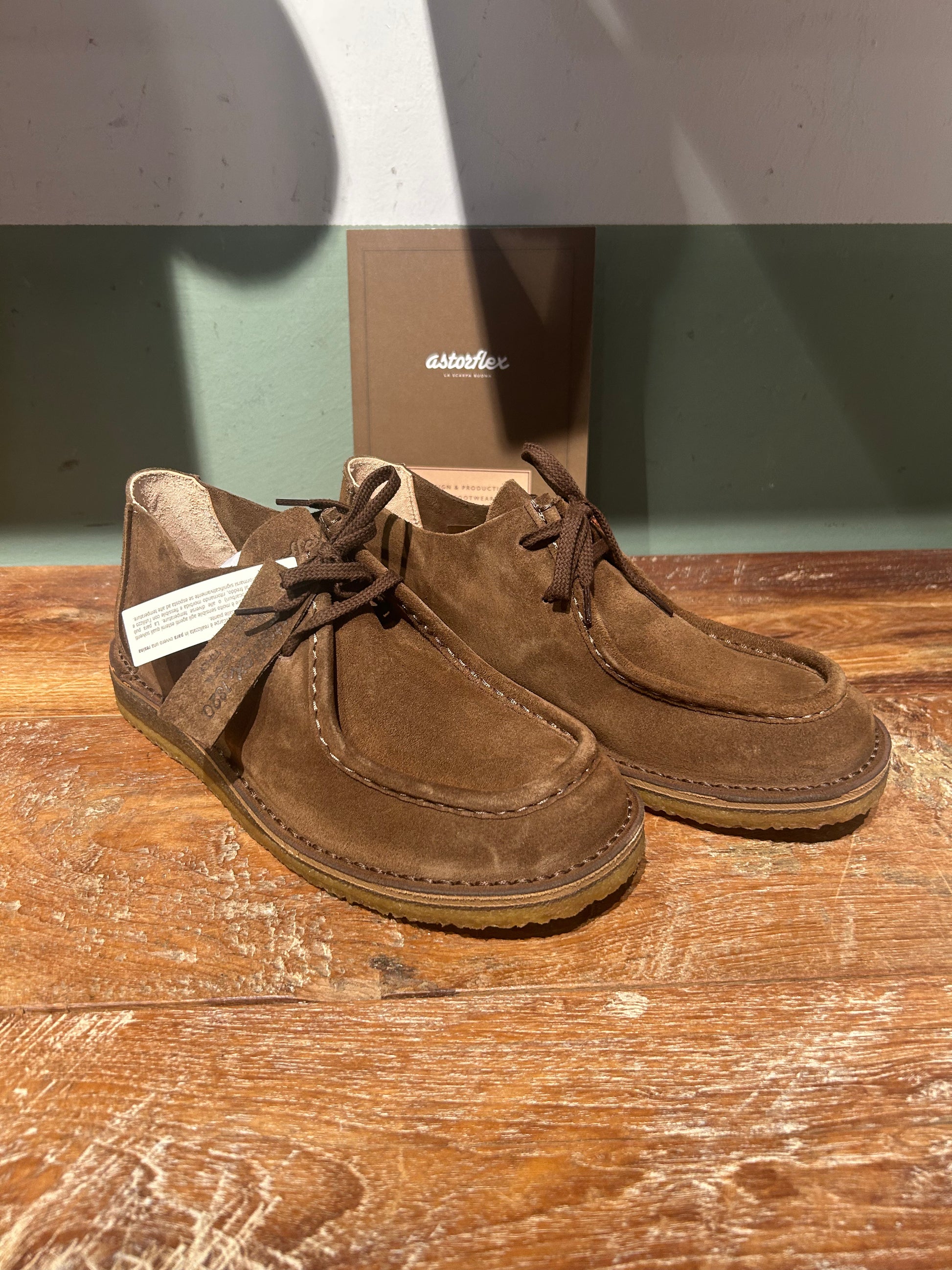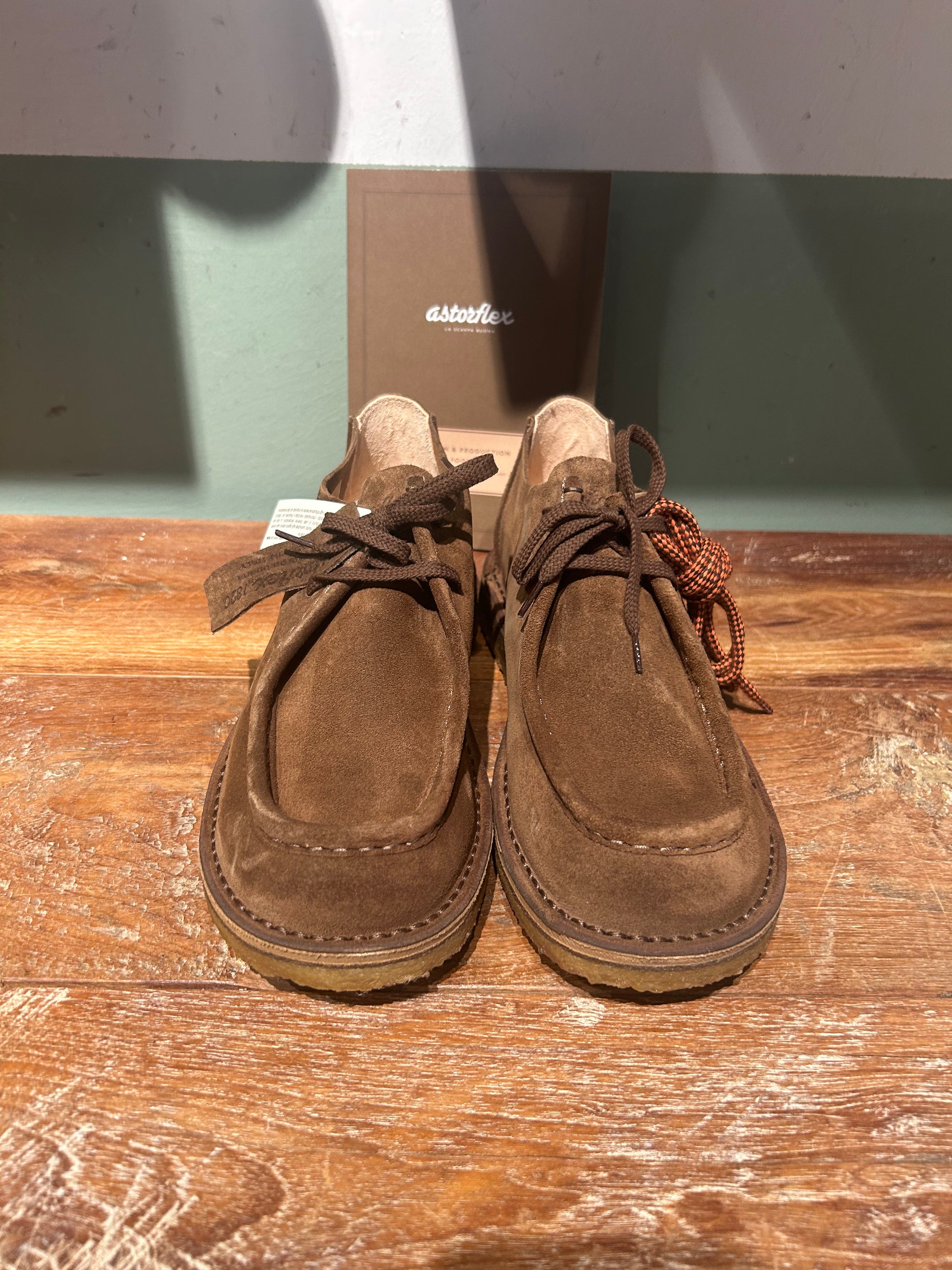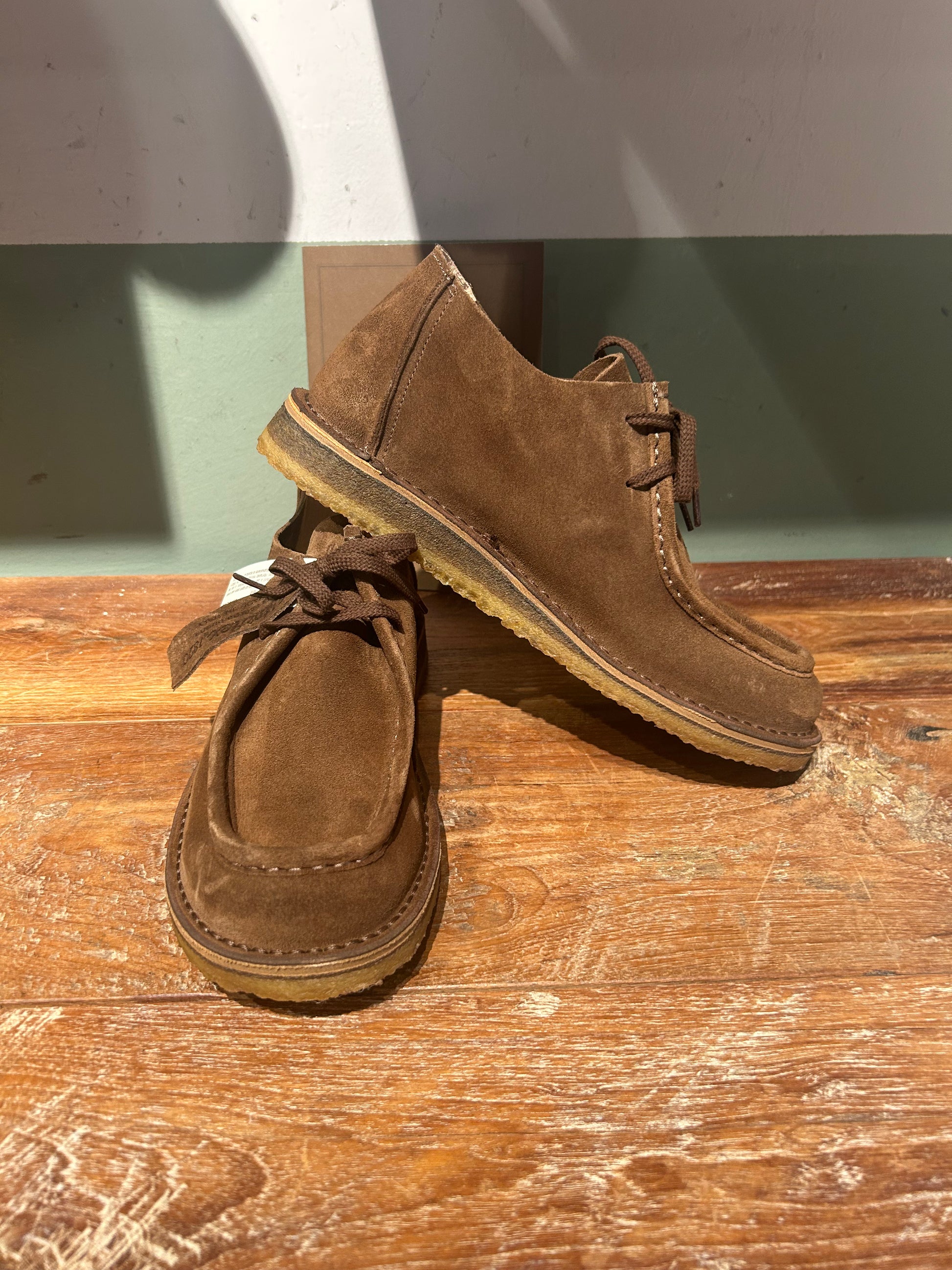 Scarpa in pelle scamosciata, lavorazione Ideal con intersuola in cuoio. Questo modello è composto da materiali genuini, questi materiali fanno si che la scarpa si adatti al piede, garantendo il massimo della traspirabilità, mantenendolo asciutto.