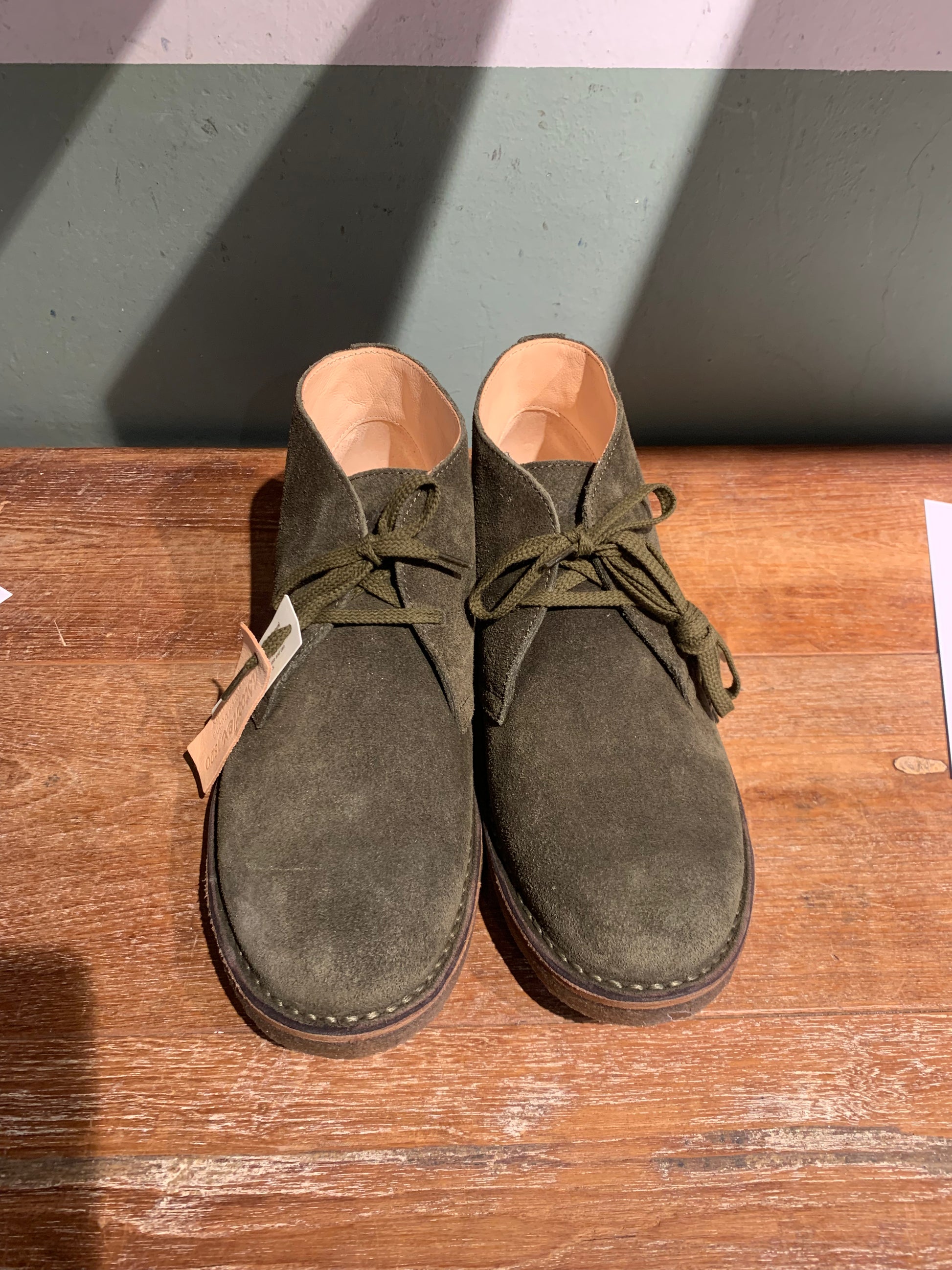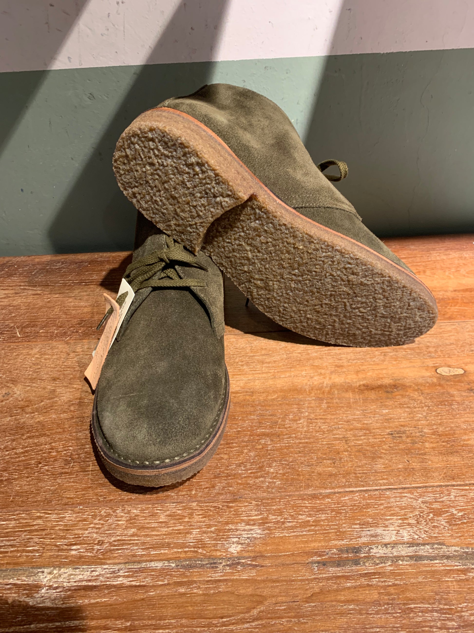 Polacchino realizzato in pellame scamosciato. Soletta interna in pelle di vitello conciata al vegetale. La suola è realizzata in para, una resina naturale ottenuta dalle piante. Lavorazione artigianale “Ideal”.