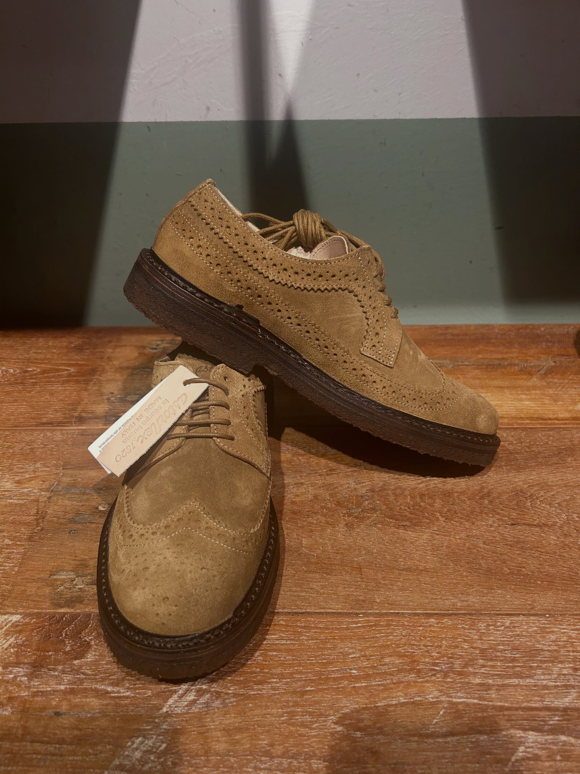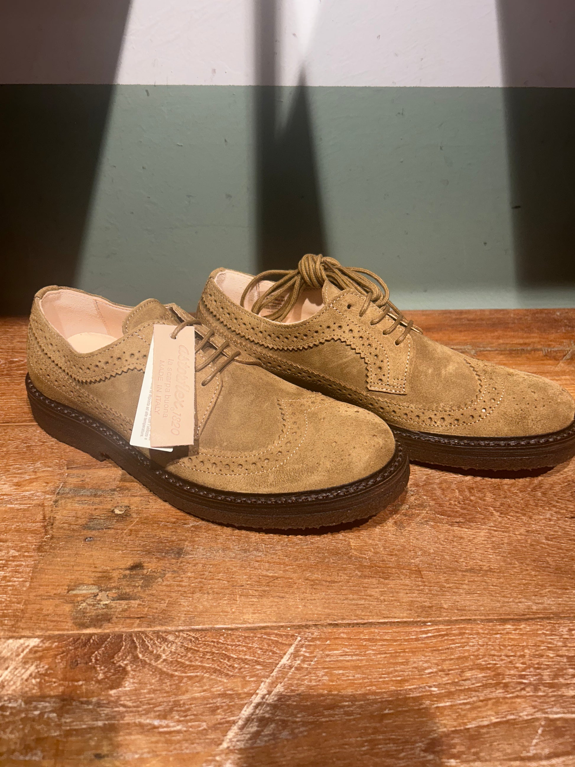 Scarpa in camoscio con fodera 100% vegetale , la suola è realizzata in para ovvero una resina naturale ottenuta dalle piante