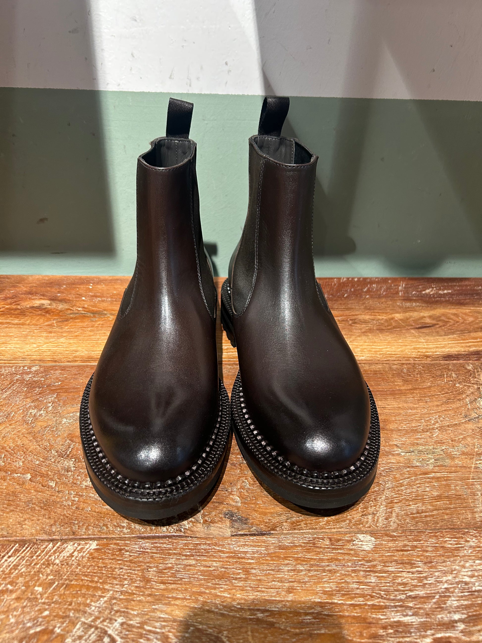 Polacca mob Beatles , in pelle invecchiata testa di moro , suola completamente cucita a mano